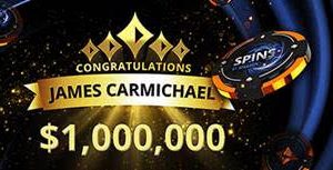 James “James23C” Carmichael becomes first partypoker SPINS millionaire. British player hit diamond flush to claim $1M jackpot. James “James23C” Carmichael yesterday became the latest player to join the exclusive club of partypoker millionaires, winning the top tier $1,000,000 jackpot from a $5 buy-in on SPINS.