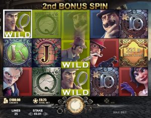 Holmes and Watson truly up the ante in the game’s free spins bonus round, appearing as expanding wilds and extra wilds. An initial 10 free spins are awarded by landing three or more scatter symbols in the base game. This exciting bonus round can also be retriggered, with a further three scatters adding another 10 free spins to the counter.