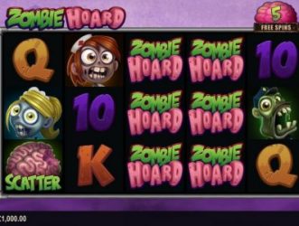 Zombie Hoard’s frenzied free spins are unleashed when 30 or more brain tokens are collected. Three or more scatters will also take the player through to the free spins round, just like in The Walking Dead Slot. Rewards are significantly boosted during the round, with super stacked wilds appearing on all reels and an incredible 2x multiplier applied to all wins.